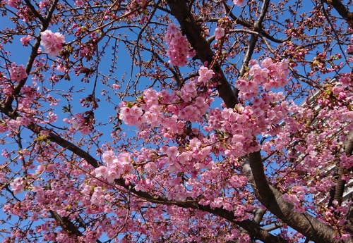 - 本社近くの公園の早咲きの桜が満開です。